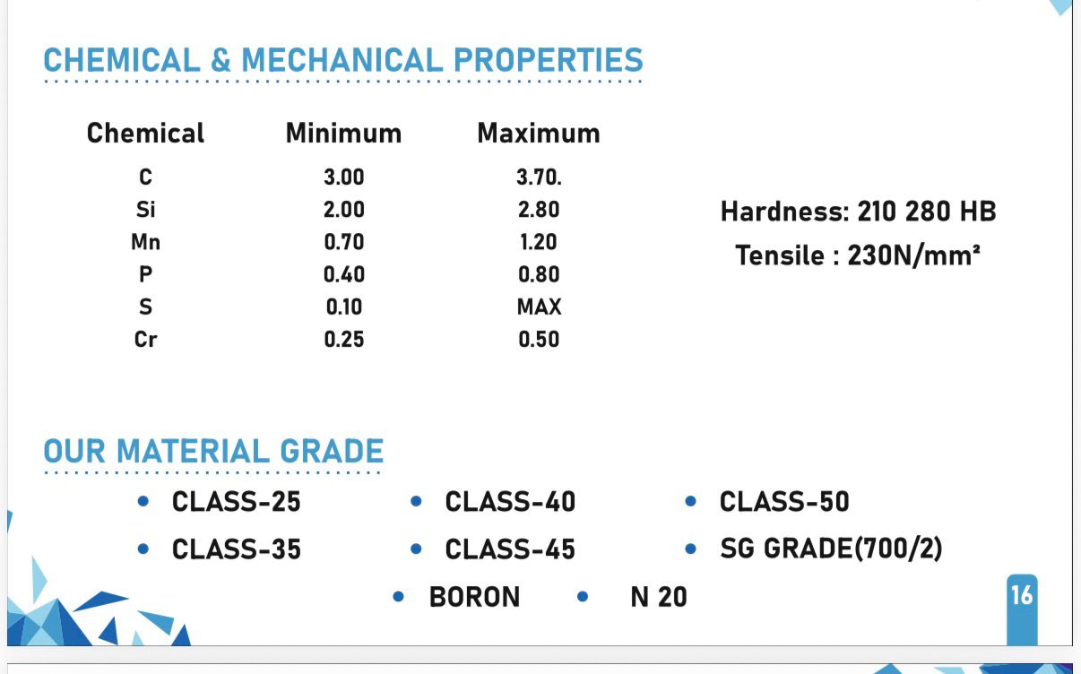 Normal composition of casting as per a-159 (g-1800 to g-4000) grade.